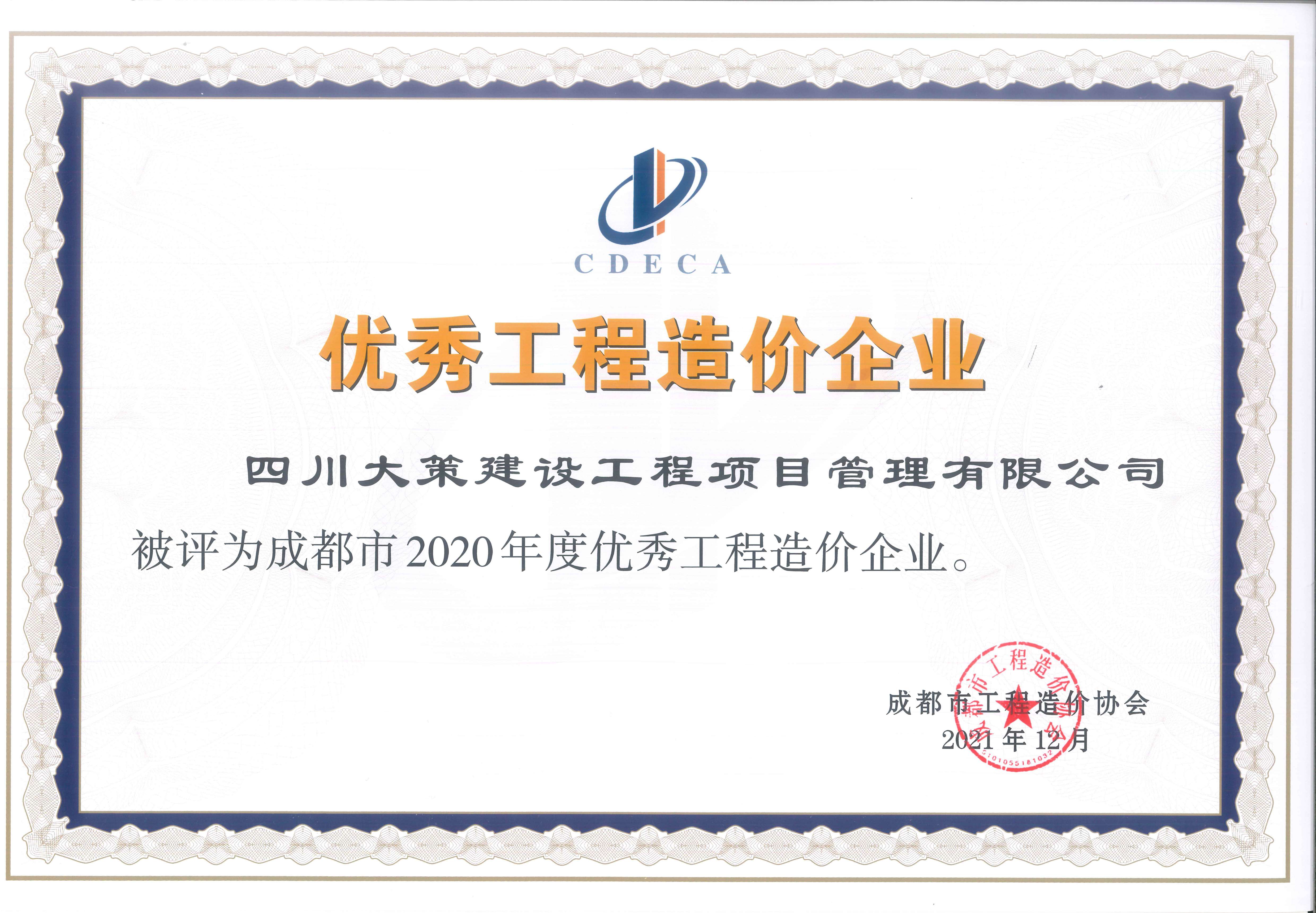• 2020年度優秀工程造價咨詢企業